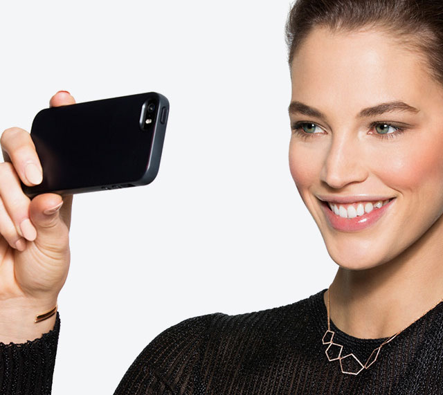 "Наклоните лицо немного вниз и снимайте сверху. Это не только помогает поймать лучший свет, но также выделяет скулы и визуально делает глаза больше".